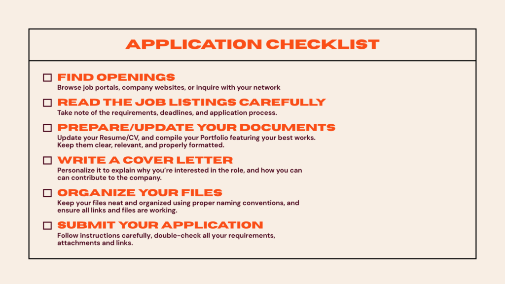 Once you’ve found roles and opportunities that align with your goals and values, it’s time to gear up for that application. But it’s important to remember, it’s more than just submitting requirements; it’s about showing recruiters why you stand out!