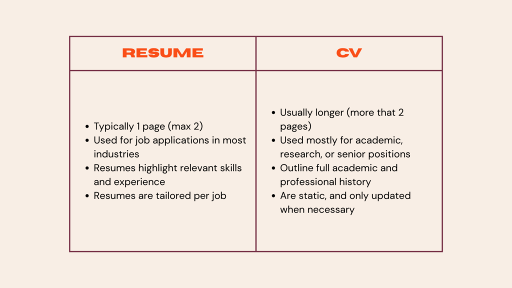 Compared to a resume, a CV is a more detailed, multi-page document. It provides a comprehensive overview of your academic and professional background, typically used for academic or research-oriented roles.