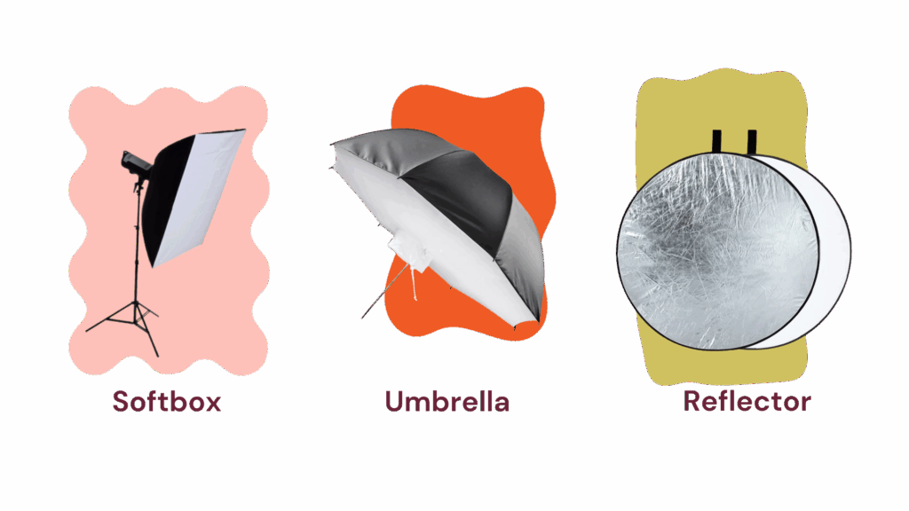 Modifiers are used to better control the light output towards the subjects, most commonly: